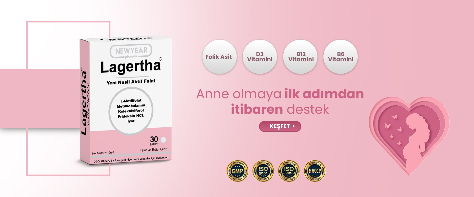 Lagertha 30 Tablet Folik Asit+D3 Vitamini+B12 Vitamini+İyot+B6 Vitamini Gıda Takviyesi