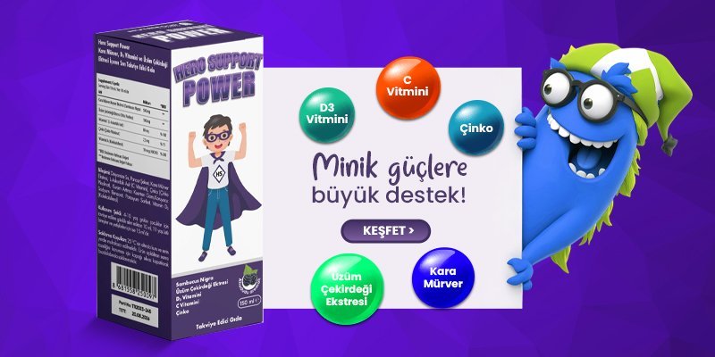 Hero Support Power Şurup Kara Mürver, D3 Vitamini ve Üzüm Çekirdeği Ekstresi İçeren Takviye Edici Gıda
